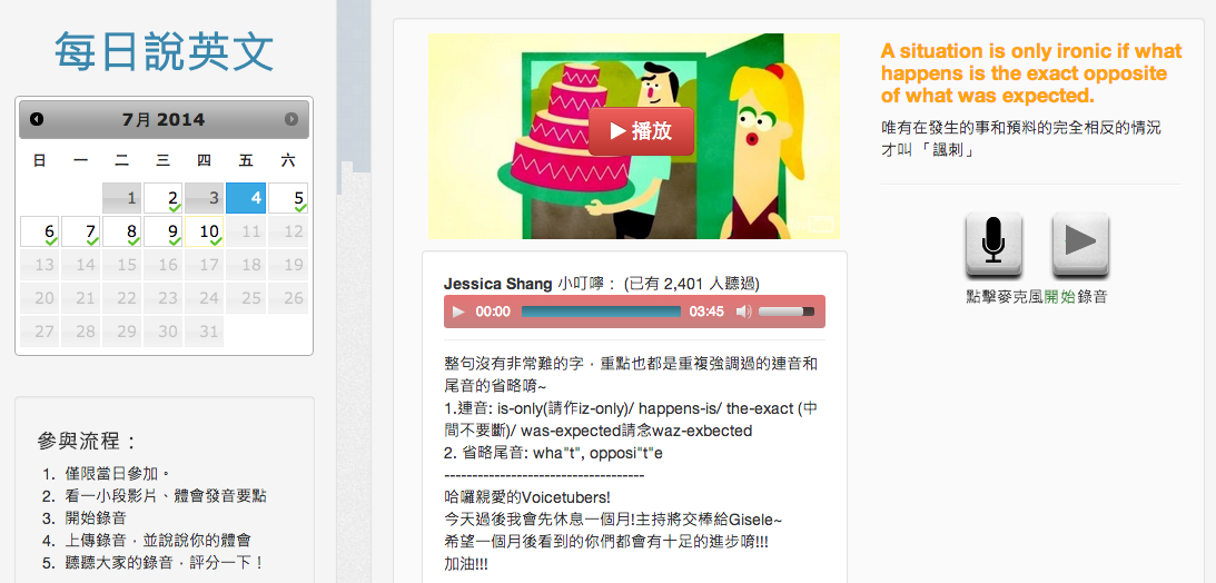 VoiceTube幫你安排好每日口說練習句!搭配主持人發音、語調等詳細解說,一點一滴累積往Native Spearker程度邁進!