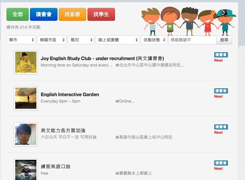 找尋可以一起奮鬥的夥伴,像是要考高分的 TOEIC、要練口說、要練聽力等等!