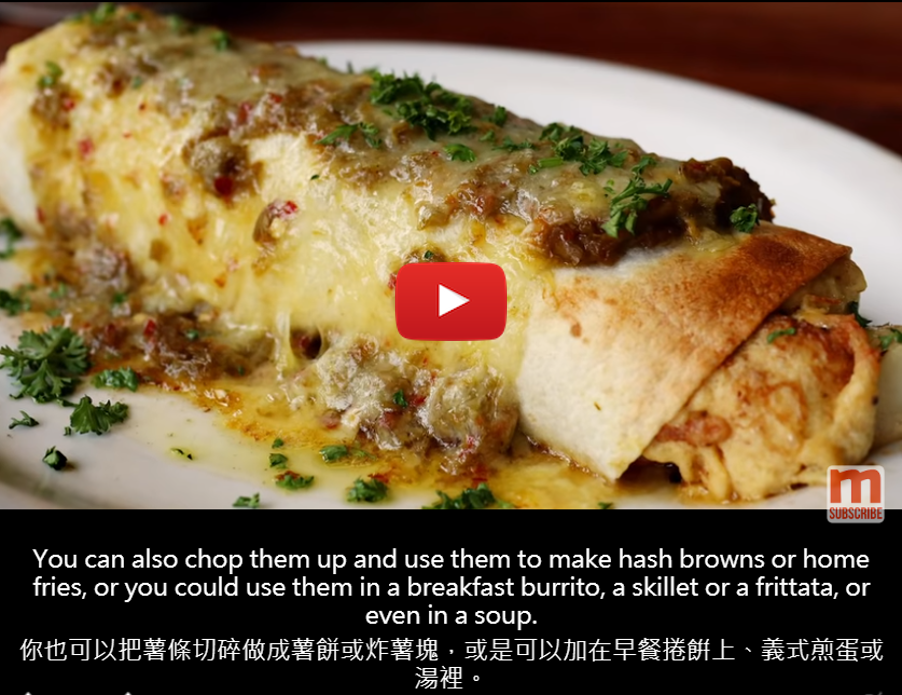 早餐最喜歡吃的「薯餅」的英文是 potato cake?心裡這樣想的你可千萬不要再繼續錯下去了喔!其實「薯餅」的正確說法是 hash browns,或稱做 hash(ed) brown potatoes,因為薯餅的做法就是把馬鈴薯搗碎,而 hash 就是「切碎」的意思,而 browns 則表示薯餅煎得金黃,略褐色的色澤。