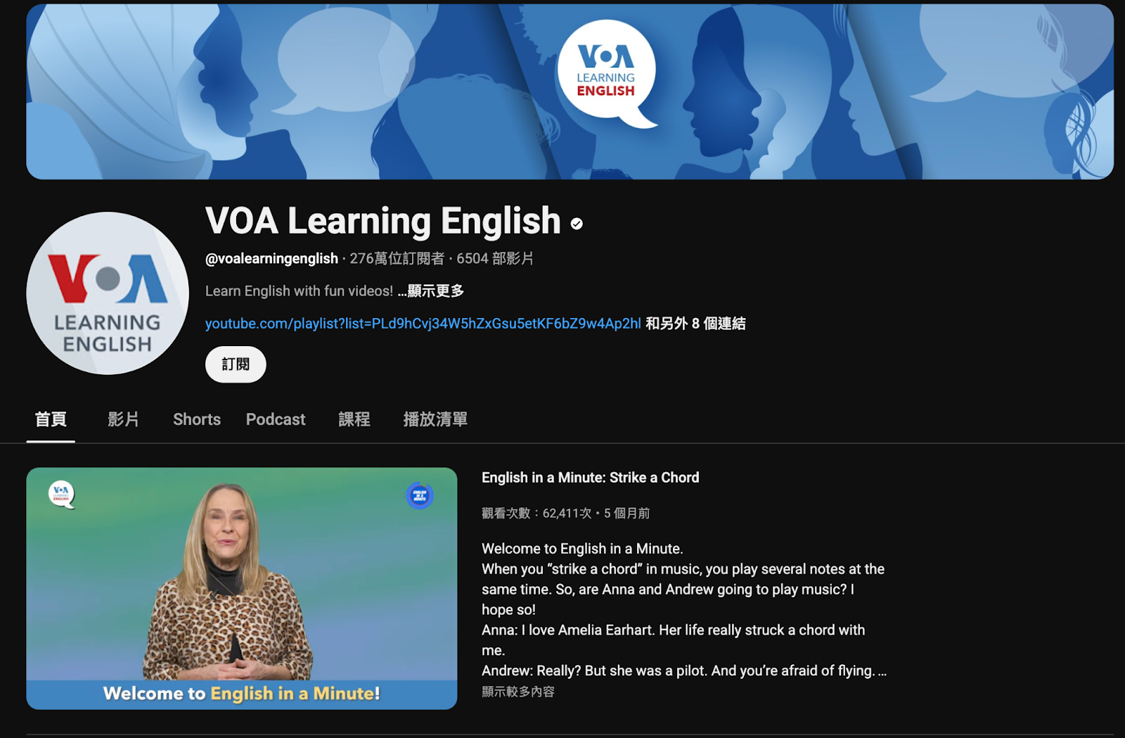 .英聽 YouTube 頻道推薦:VOA Learning English 美國之音