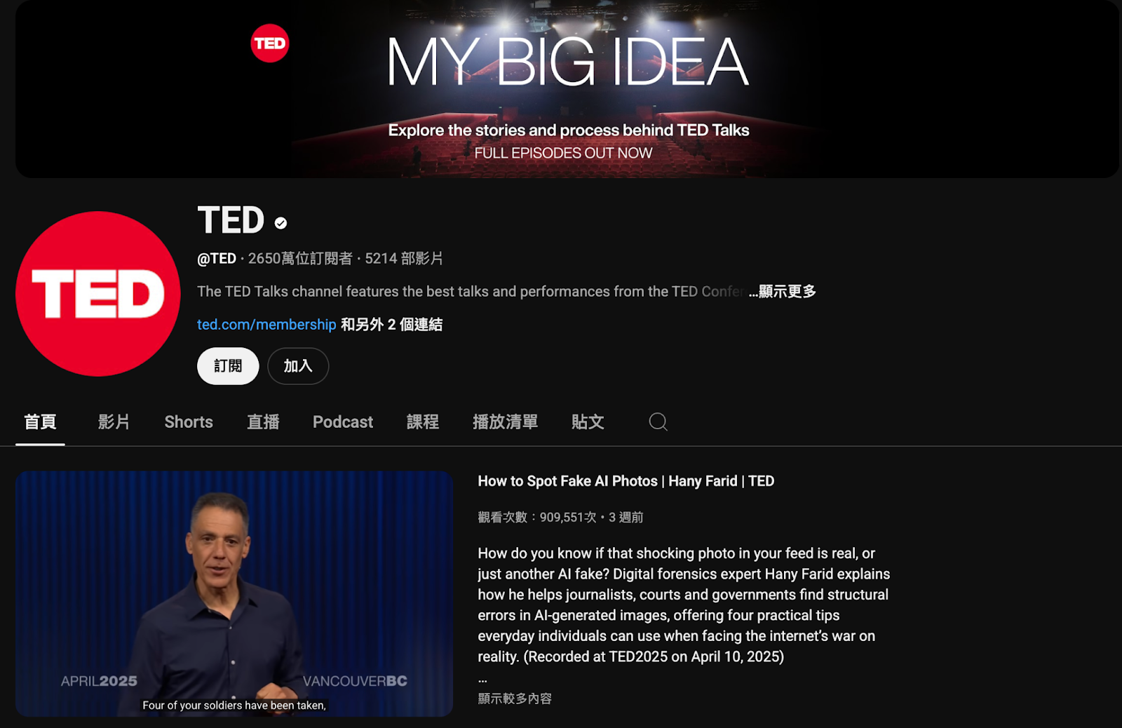TED 平台以高品質的演講與教育影片聞名,主題涵蓋教育、科技、心理、商業等多個領域。 演講者來自世界各地,讓你接觸到多元口音與表達風格,非常適合訓練專業英文的理解力與聽力耐受度。