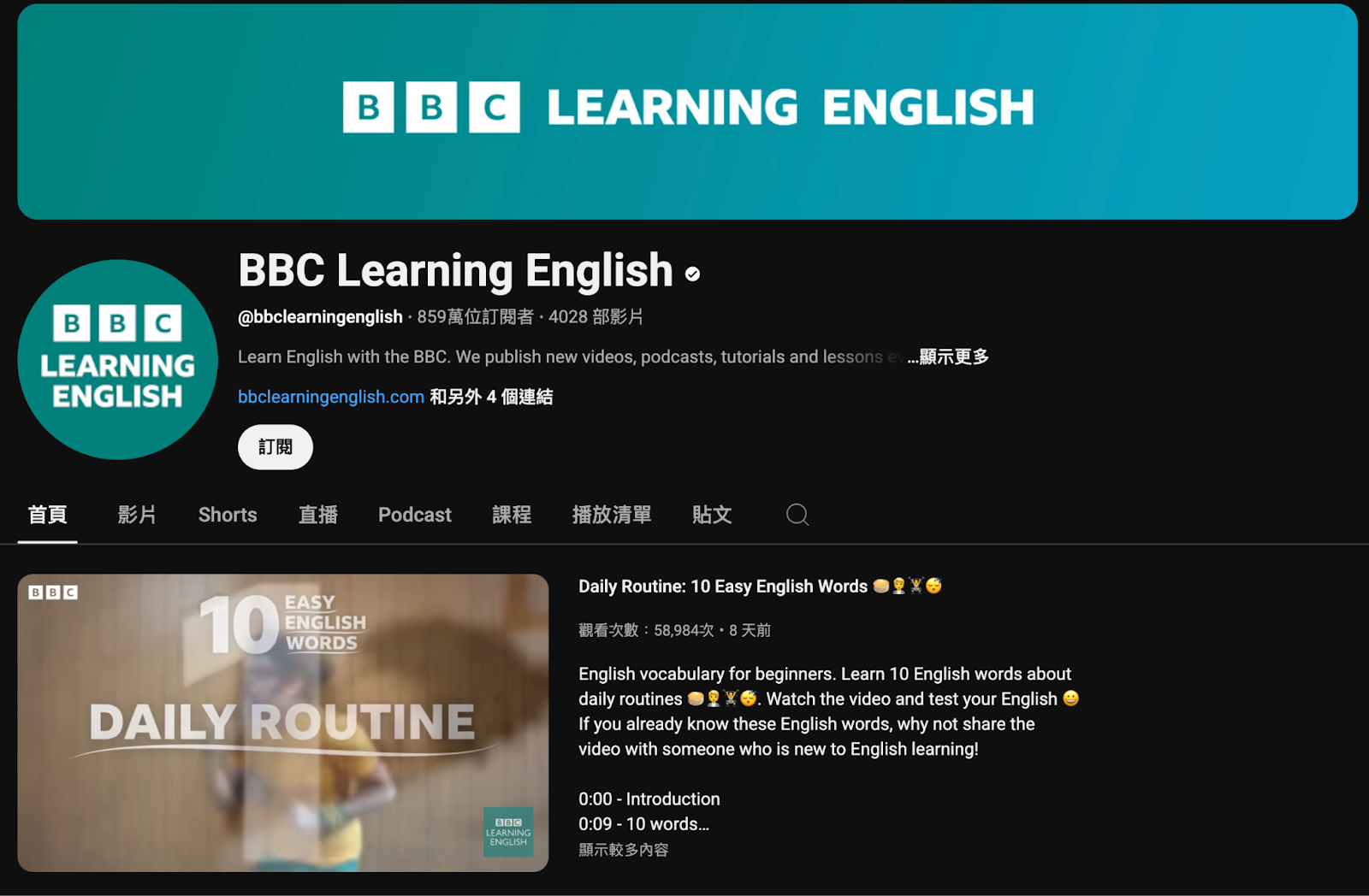.英聽 YouTube 頻道推薦:BBC Learning English
